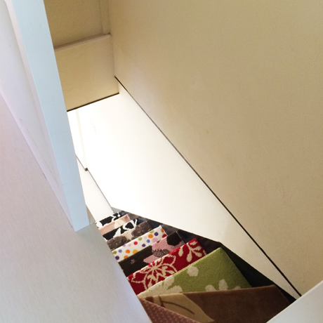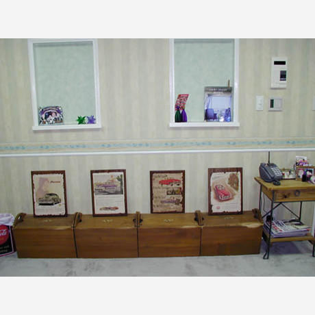 物件の西側壁がすべて大きな窓となっており、西陽が強く入る物件のため、西側の窓を全面杉板張りとし、その隙間から西陽が入り込むことで、夕方の強い太陽光が柔らかな表情になるように致しました。さらに杉板にカラービー玉を埋め込むことで、お天気の日の夕方にはビー玉が美しく光り輝くという遊び心も加えさせていただきました。