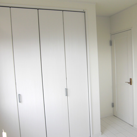土地をご購入されたお客様より新築戸建てのご注文をいただき、弊社にて内装のディレクション&施工を担当致しました。フルオーダー注文住宅ではありませんでしたが「床面積に対して、部屋数がたくさん必要だけれど、狭く見えないようにしたい。アクセントにヨーロピアンのテイストを取り入れて欲しい」といったオーナー様のご意向を反映し、白を基調とした上で、窓からの採光を上手く利用することで、視覚的な広さを感じられるよう配慮いたしました。