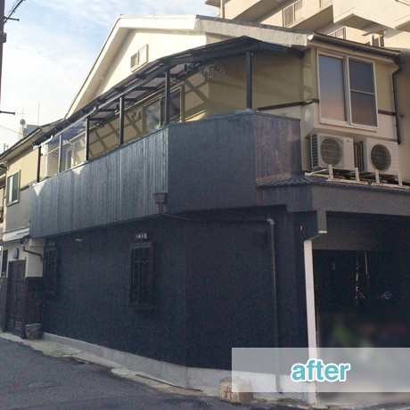 築年数の経過した中古住宅にお住まいのオーナー様より、屋根を含む外観の全面リノベーションのご注文をいただき、弊社にてデザイン&施工を担当させていただきました。「和風過ぎない和風で、古民家カフェのようなオシャレで落ち着いた外観にしたい。また屋根付きのベランダの増築と敷地内に自転車置き場の設置もしたい」というオーナー様のご意向を反映し、施工させていただきました。