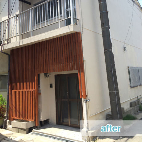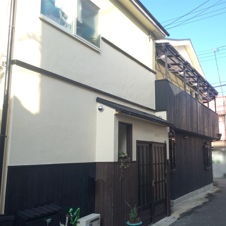 築年数の経過した中古住宅にお住まいのオーナー様より、屋根を含む外観の全面リノベーションのご注文をいただき、弊社にてデザイン&施工を担当させていただきました。「和風過ぎない和風で、古民家カフェのようなオシャレで落ち着いた外観にしたい。また屋根付きのベランダの増築と敷地内に自転車置き場の設置もしたい」というオーナー様のご意向を反映し、施工させていただきました。
