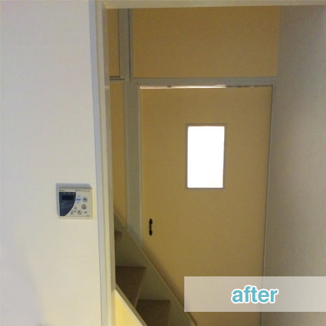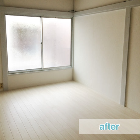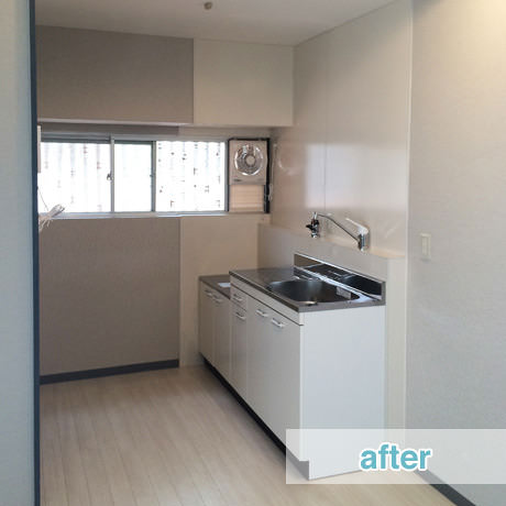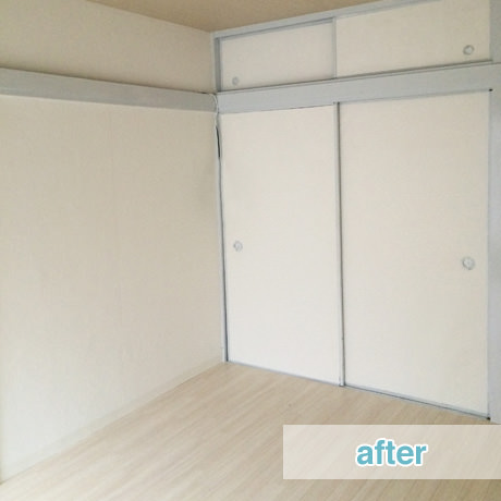 独身の方からご夫婦の入居者様まで幅広い年代を想定して、全室を和室から洋室変更しつつもデザインハウスのテイストを抑えて、アクセントクロスも薄いクリーム色を採用することで清潔感のあるイメージを全面に出したお部屋へとリフォーム致しました。半野外となっていた洗面室の室内化などを含めて、水廻りの家事動線の美装を中心に入居者様にとって使い勝手の良い空間づくりをさせていただきました。