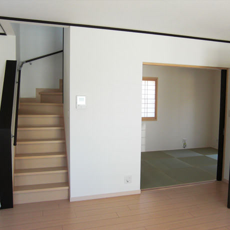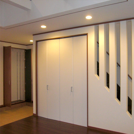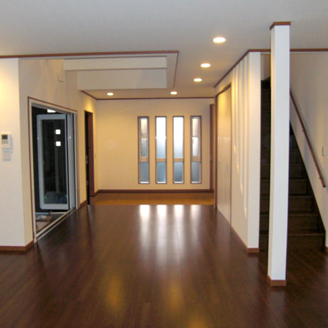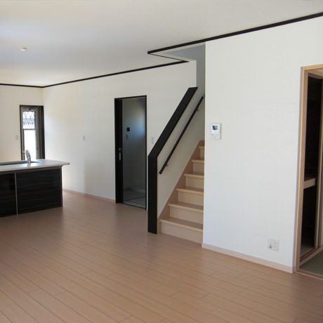 土地をご購入されたお客様よりメーカー規格品での施工のご注文をいただき、弊社にて担当致しました。「自分ではなにを選べばおかしくない室内になるのかよくわからないし、家族の意向なども含めて相談に乗って欲しい」とのことでしたので、お住まいになられるご家族様の好みなどを伺った上で、壁紙や配色のコーディネートに関するご相談も同時に承りました。