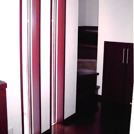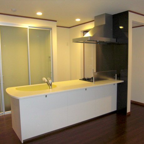 新居として中古戸建てを購入されたオーナー様より全面リノベーションのご注文をいただき、弊社にて内装とデザイン&施工を担当させていただきました。「狭小住宅ではあるが、全体的にオシャレにポップな感じのデザインで、出来るだけ広く見えて使い勝手がいい間取りに全面改装したい。」というオーナー様のご意向を反映し、全室の扉は引き戸を採用し、天井に吹き抜けを作って空間を広く見せるなどのご提案をさせていただきました。それと同時に、明るく清潔感のあるカラーリングを採用することで、実際よりも広く見える室内デザインに仕上がりました。また寒いのが苦手との施主様のご意向を重視し、「高断熱性+高気密性」を実現することにより、熱損失が少なく省エネルギー効果の高い家に仕上げさせていただきました。