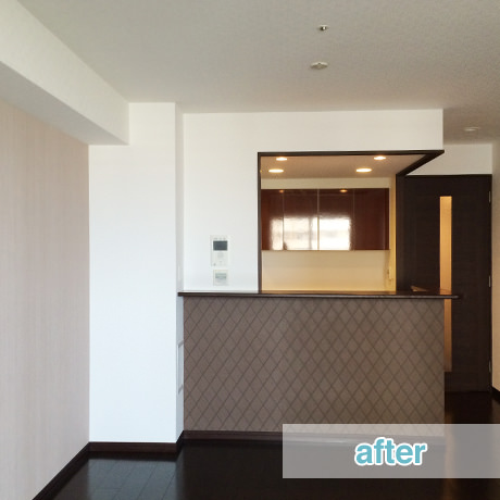 タワーマンションのオーナー様より、ご自宅としてお住まいになっていた部屋を賃貸に出すために、原状回復リフォームのご注文をいただき、弊社にて内装デザイン&施工を担当致しました。「個性を重視するのではなく、無難ではありつつも、品よくまとまりのあるデザインで、幅広い年代の方に喜んでもらえるような部屋作りをして欲しい」というオーナー様のご意向を反映したデザインの提案をさせていただきました。早く賃貸募集をしたいということですので、予算に収まる範囲で、できるだけ短い工期の対応をさせていただきました。